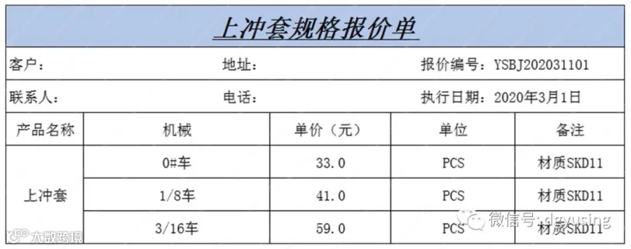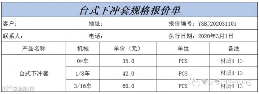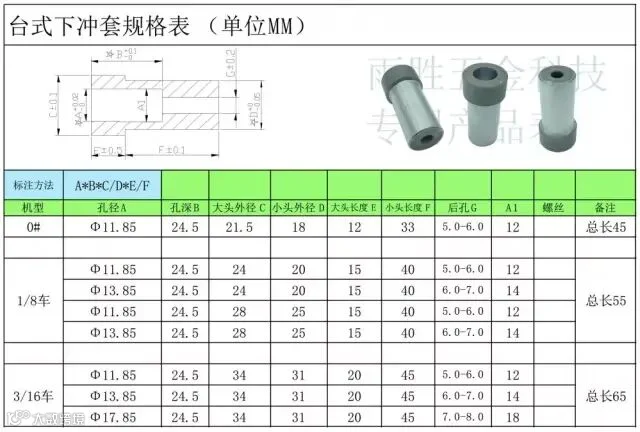 台式下冲套参数表