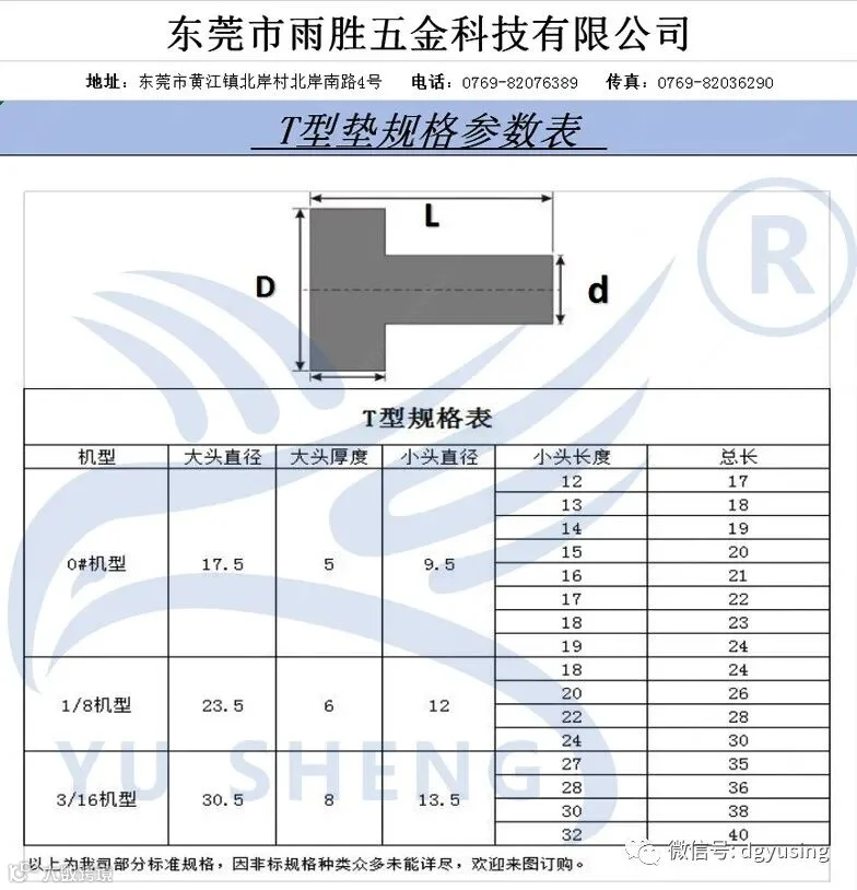 T型后垫规格参数表