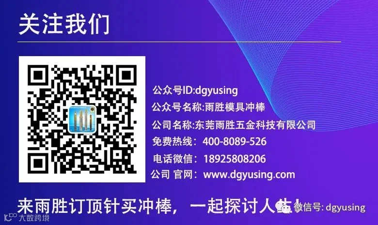 雨胜五金科技成立于2011年,坐落在美丽的东莞,主要生产及研发顶针、冲棒、防盗冲棒、螺母冲棒、各种异形拉伸冲棒、进口合金冲头冲棒、紧固件模具周边配件,以及代理锯片、铣刀、量具、进口工具配件。坚持以:“科技改变生活,雨胜改变人生”的发展理念