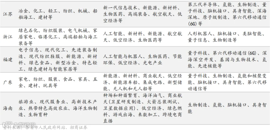 浙江省则紧紧抓住共建上海( 长三角)国际科技创新中心的机遇,推动杭州城西科创大走廊等平台提能升级 ,并将人工智能发展作为重要工作,明确设定2026 年人工智能核心产业营收增长 20%以上的量化目标,并支持“魔搭社区”打造国际一流开源社区。福建省则充分发挥其海洋资源优势,在巩固临港工业、海工装备制造业等传统优势的同时,着力壮大海上风电、海洋生物医药、深海开发等新兴和未来产业,体现了陆海统筹的产业布局思路。