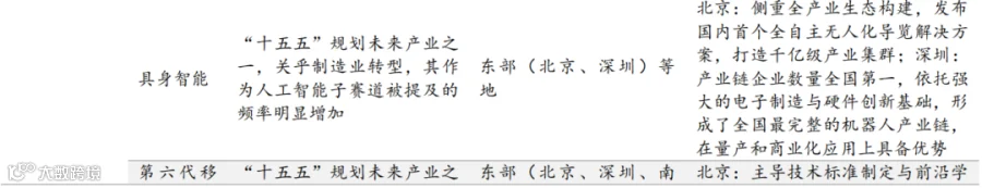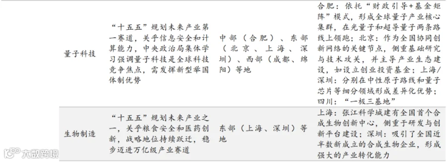 未来产业前瞻布局:瞄准新一轮科技革命和产业变革前沿,普遍布局量子科技、生物制造、氢能和核聚变能、脑机接口、具身智能、第六代移动通信(6G ) 等未来产业,通过技术研发、试点示范、场景应用等方式,培育未来经济增长新引擎,东部、 中西部重点科创省份更是将未来产业作为抢占全球产业竞争制高点的关键。
