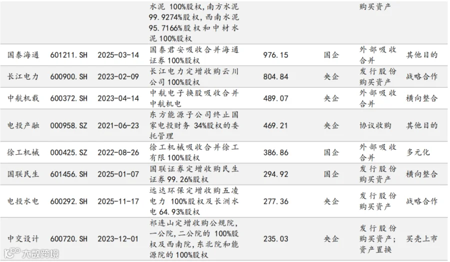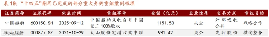 央国企担当主力,民企活跃于新质生产力领域。 国有控股上市公司,尤其是中央企业,是 2025 年大型并购重组交易的绝对主力。2025 年央企作为竞买方参与的并购重组案例交易总价值超过 3750 亿元,创过去五年新高,较 2024 年增长超三成。2025 年首次披露的 2 起央国企主导的千亿级并购案,如中国神华拟1335.98 亿元收购集团旗下 12 家核心能源企业股权的交易已于 2026 年 3 月 18日顺利完成、中金公司拟 1142.75 亿元吸收合并东兴证券与信达证券已进入董事会预案阶段。这反映了在国资委推动国有资本向重要行业和关键领域“三个集中” 的指引下,央国企正通过并购重组优化国有经济布局,提升核心竞争力。与此同时,民营企业仍是市场活跃的重要力量,尤其在战略性新兴产业领域。 2025 年,非国有企业的并购重组金额占比从 2024 年的 23.5%跃升至 37.2%。计算机、 电子、机械、 医药等新质生产力行业的并购主要由非国有企业主导,凸显了民营经济在科技创新和产业升级中的关键作用。