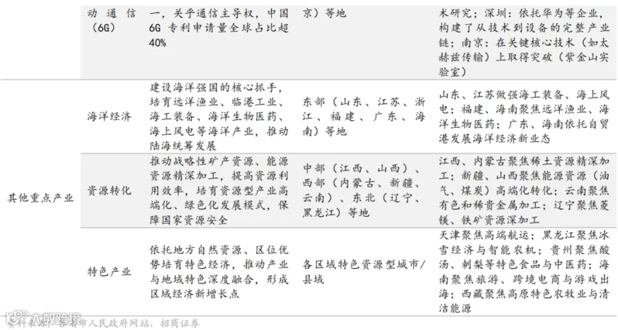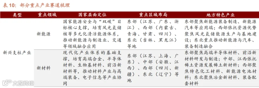“十五五”规划建议明确提出,着力打造新兴支柱产业,加快新能源、新材料、航空航天、低空经济等战略性新兴产业集群发展。前瞻布局未来产业,推动量子科技、生物制造、氢能和核聚变能、脑机接口、具身智能、第六代移动通信( 6G )等成为新的经济增长点。各地围绕国家重点赛道,结合自身优势形成特色布局,部分重点产业赛道的国家定位、 区域布局与地方特色差异如下表所示。