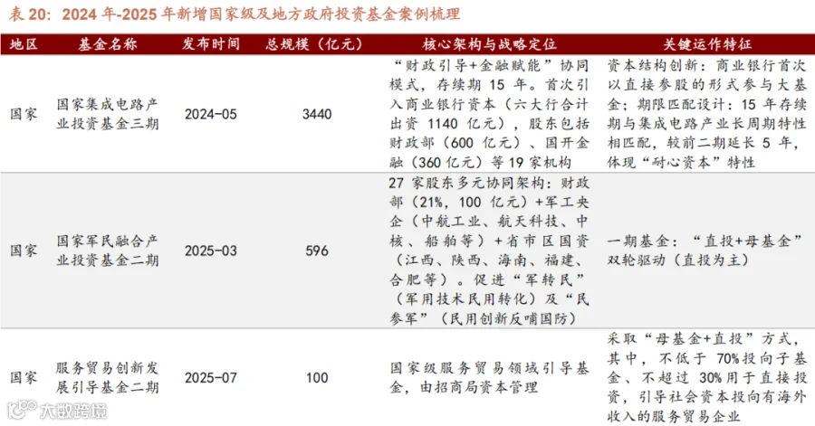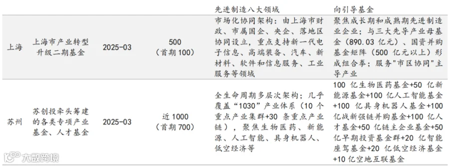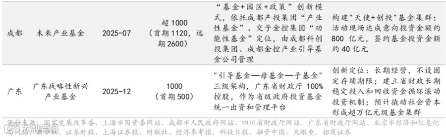 政府投资基金从 “规模导向”转向 “精准滴灌”。 2024-2025 年,地方政府投资基金呈现 “基金群”化、专业化趋势,不再追求单只超大规模,而是设立多只定位分明的产业基金。上海三大先导产业母基金( 890 亿元)、四川省产业投资引导基金(首期 200 亿元)、北京市政府投资引导基金(增资至 2500 亿元)、广东战略性新兴产业基金(500 亿元)等相继落地。2025 年 3 月,上海发布产业转型升级二期基金(总规模 500 亿元)及国资并购基金矩阵(总规模 500 亿元以上),形成 “创投+并购”全周期支持体系。