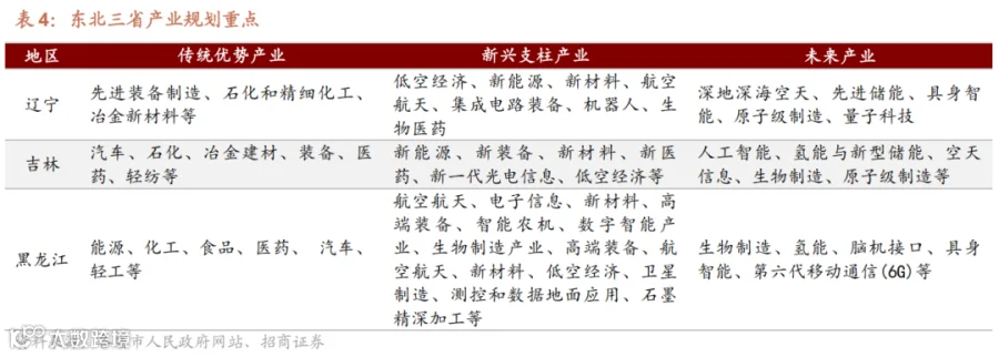 (4)东北聚焦传统产业升级和特色装备制造,老工业基地振兴
