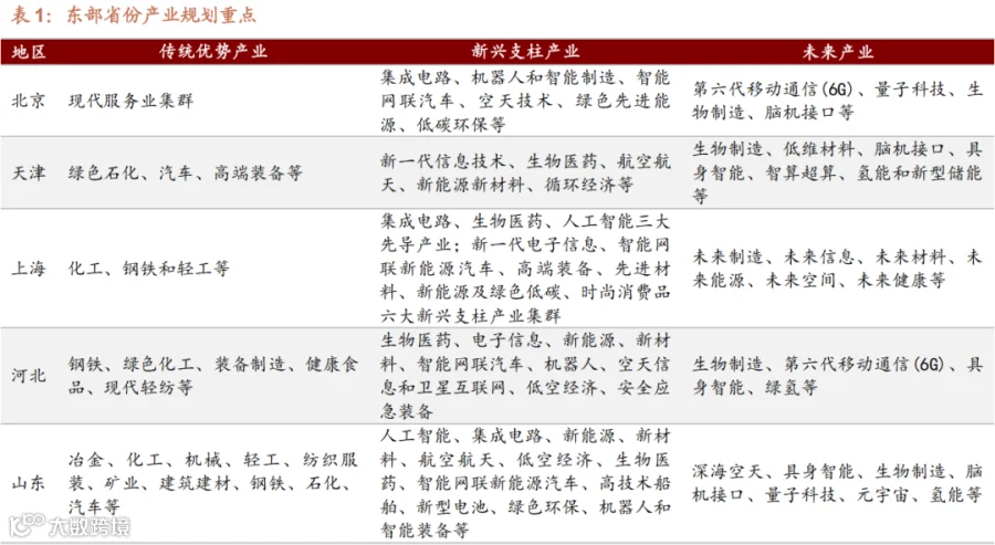 一、各省产业规划重点(传统、新兴、未来三维并进)