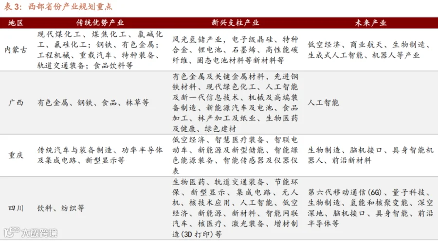 (三)西部结合资源和战略腹地优势,瞄准算力与特色产业建设