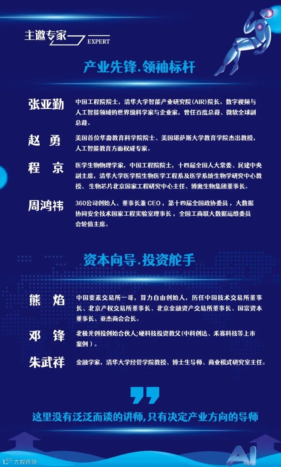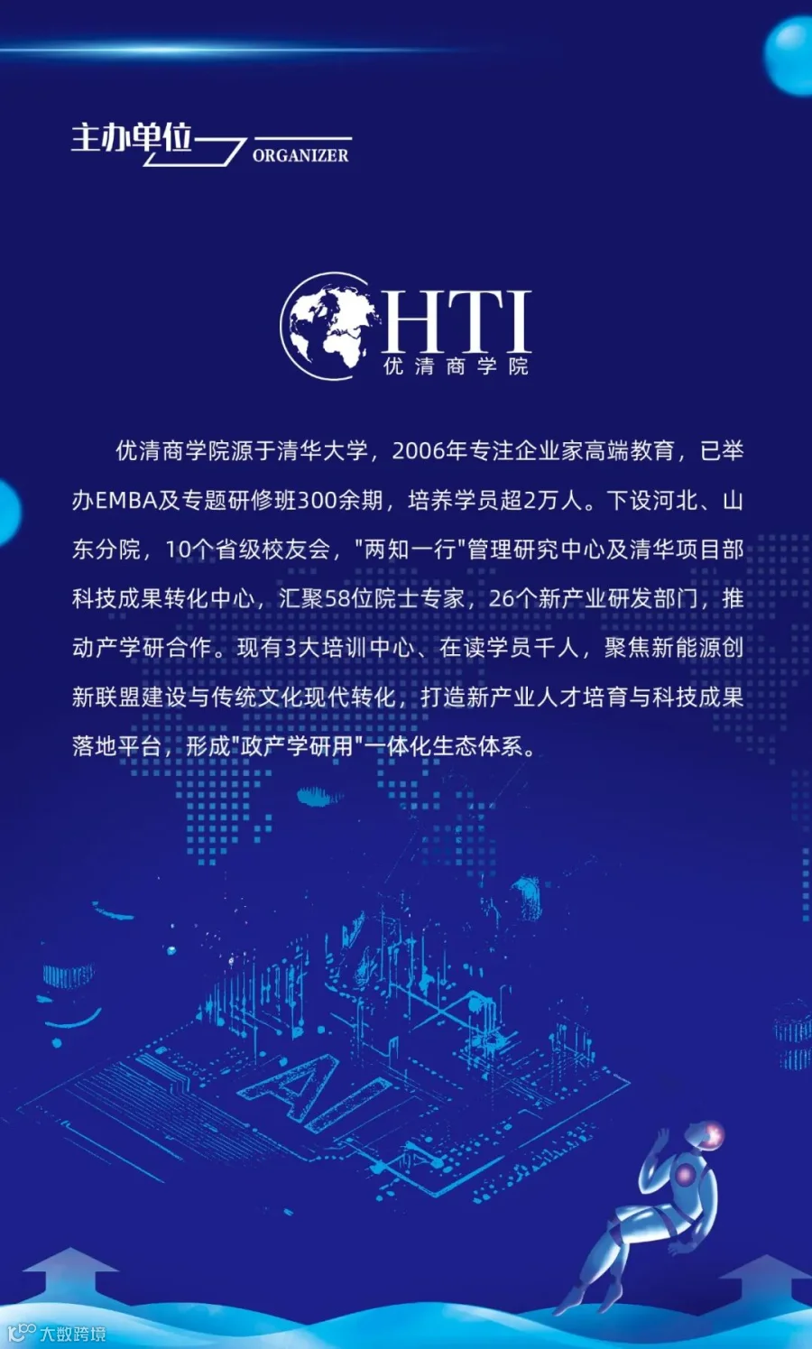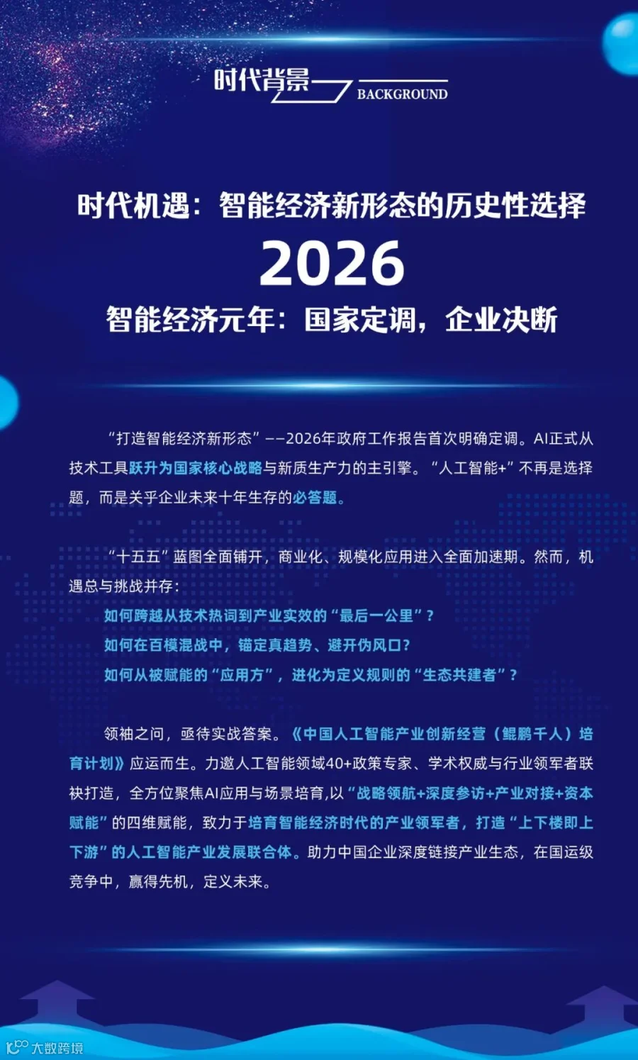 对象:央国企人工智能或数智化业务板块负责人;有关省市数据政务局及数据交易所负责人;人工智能产业链(AI芯片、算力和数据中心、大模型、AI智能体开发等)上下游企业负责人;无人驾驶汽车、无人机和机器人产业链上下游企业负责人;智慧城市、智能制造、智慧能源、智慧低空、智慧矿石等领域企业负责人;拟投资布局人工智能赛道的企业负责人及机构投资人。