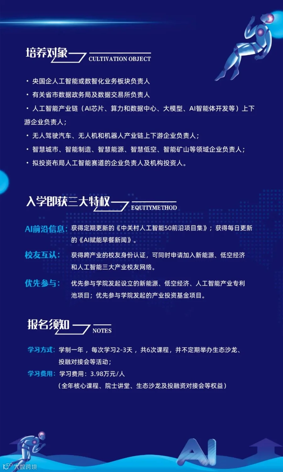 学费:3.98万元/人(全年核心课程、院士讲堂、生态沙龙及投融资对接会等权益)