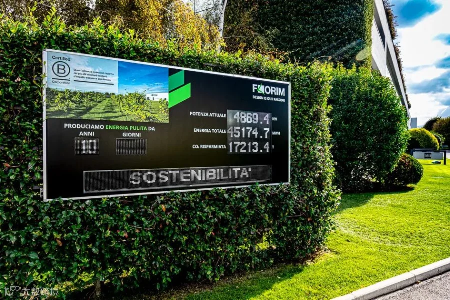 FLORIM连续17年发布《可持续发展报告》,公开分享其环保与社会责任进展。自2011年起,FLORIM累计投入超过7700万欧元用于降低环境影响,实现了100%的生产废料回收与100%的工业废水再利用。同时,通过自建发电设施,自发电量可满足高达100%的用电需求。此外,FLORIM积极推进绿色基础设施建设,新建雨水回收系统,大力提高可再生能源在能源结构中的占比,率先启用电动物流车队,减少运输环节的碳排放。这些措施构建了完整的绿色生产闭环,将可持续发展理念转化为可量化的成果。
