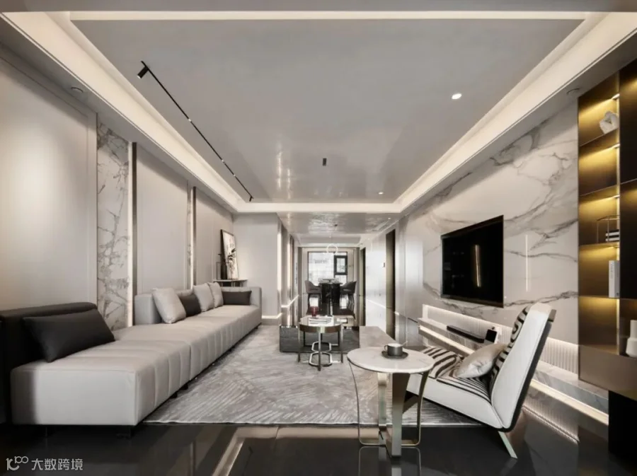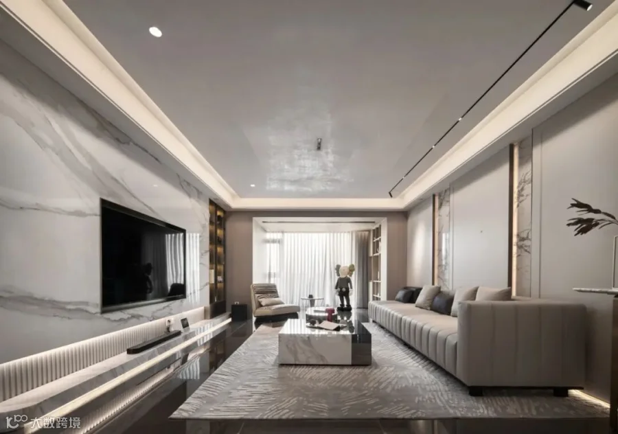 △大厅沙发背景墙 | 意大利FLORIM奢华设计·细花白