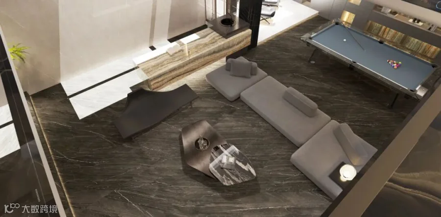 天青石:120X280cm、砂岩/木纹洞石:120X240cm
