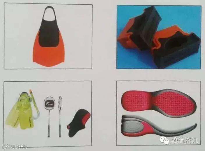 运动器材系列:蛙镜、蛙脚潜水器材,护胸器弹条、握力器手把、球拍手把、自行车握把、脚踏板、溜冰鞋轮。