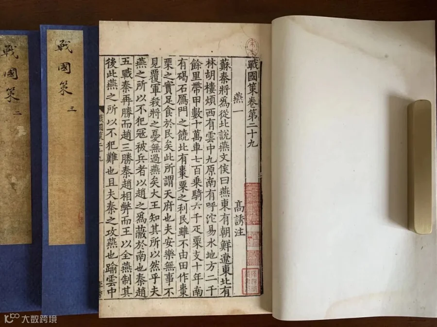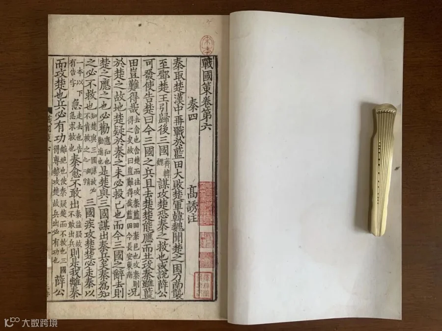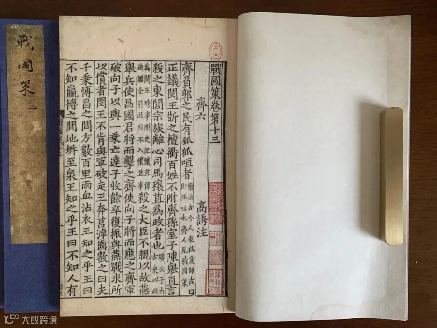 当日钱谦益从梁溪安氏、高氏分别购得两个宋刊姚校《战国策》,其后安氏本不知下落,好在《四库全书》本、雅雨堂本都是根据安氏本的影钞本,略存面目。高氏本辗转归黄丕烈,在顾广圻的帮助下,刻入《士礼居丛书》,影响极大。原书最后归南海潘氏,由潘家捐给了今天的国家图书馆。