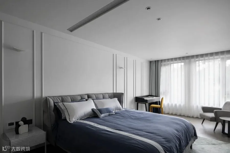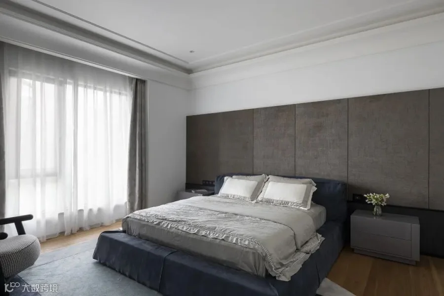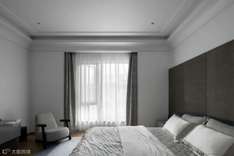 灰色格调的长辈房,用材质与形态塑造了视觉上的通透和轻盈,打造极简、舒适的生活空间。