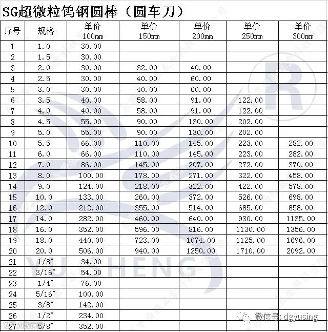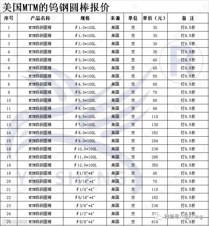 进口超微粒钨钢圆棒价目表,客户也可以根据自己要求的尺寸大小进行询价,报价。联系我们:18929280654彭生