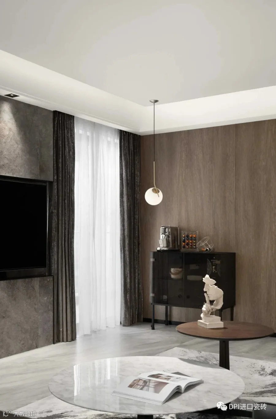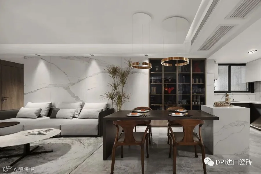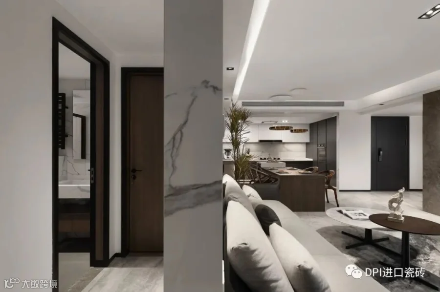 本案运用了REX特级雪花白,源自卡拉卡塔,经典的黑白组合,高贵的白色石纹,纯正的黑色线条,极致和永恒。现代简约的视觉,描绘出沉稳大气又不失温馨舒适的空间感受,没有繁花似锦,唯有灰白刻画的原生之美,缔造了空间永不过时的品味与格调。