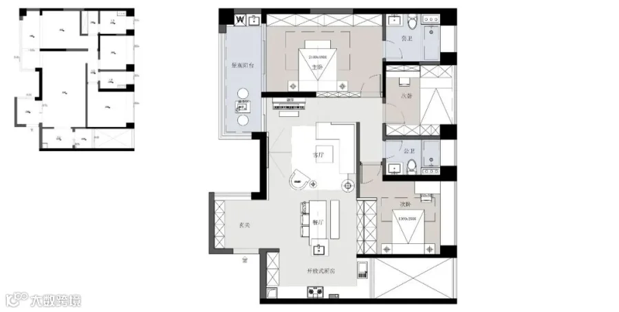 与餐厨、阳台区域的连贯打通