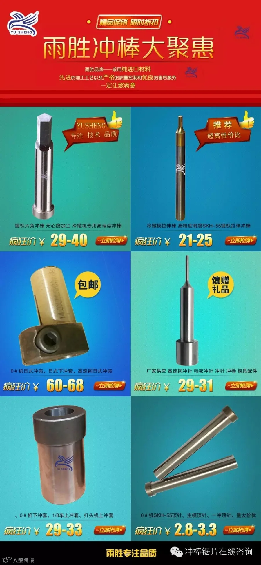 主要下看就是咱们雨胜产品限时特卖0#机顶针和0#机冲套、高速钢割尾锯片