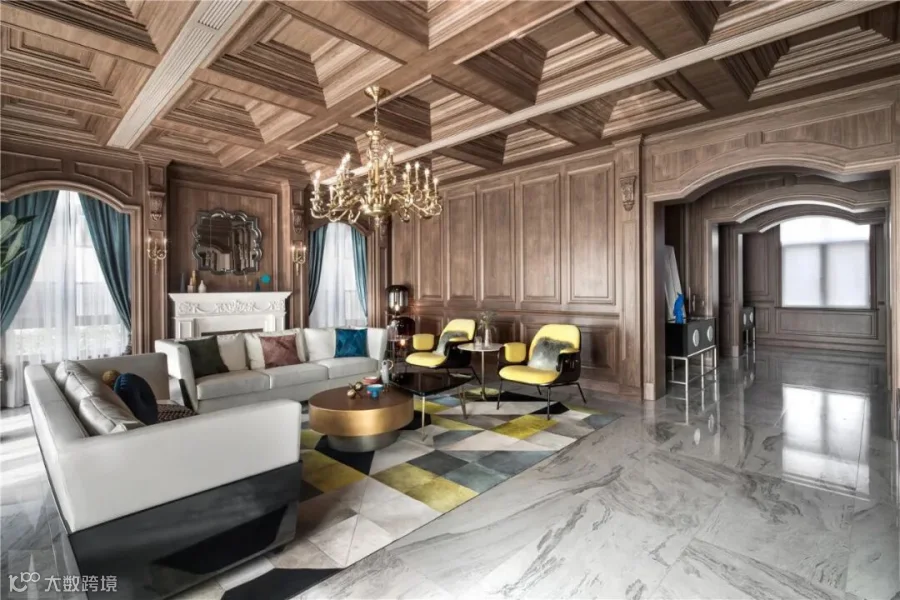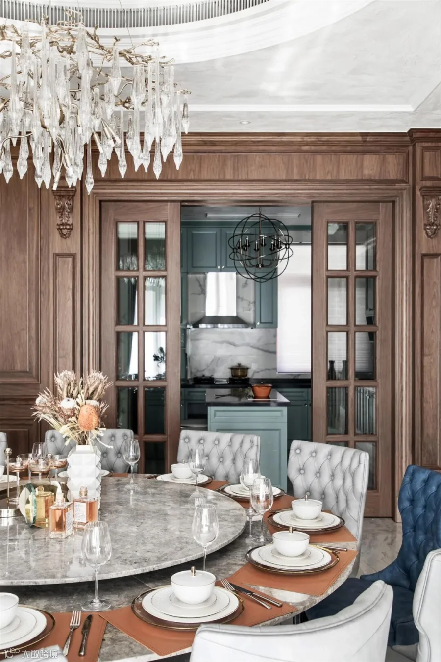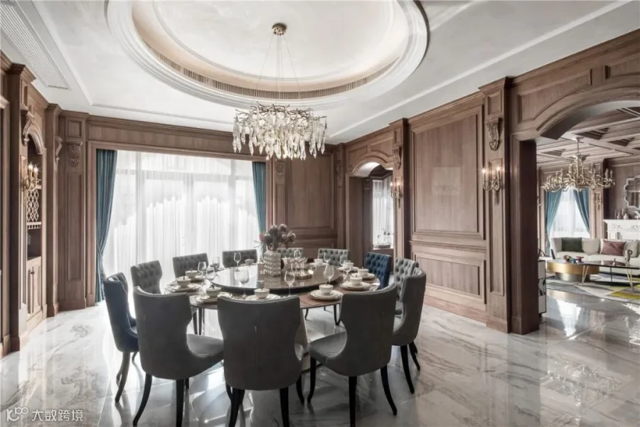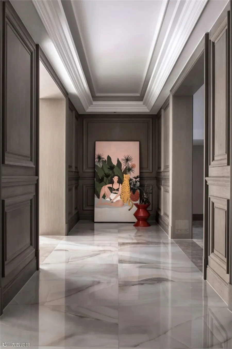 本案——诸暨祥生御江湾,选用了DPI进口瓷砖·REX法国流金灰色、汉妮玉深啡、特级雪花白以及GRESPANIA帕尼亚兰斯系列产品,让大气沉稳的优雅空间,流淌着明动的活力,每一处细节都呈现奢华、优雅的独特品质,既保留古典美式风格的庄重,又有着焕然一新的时尚感。