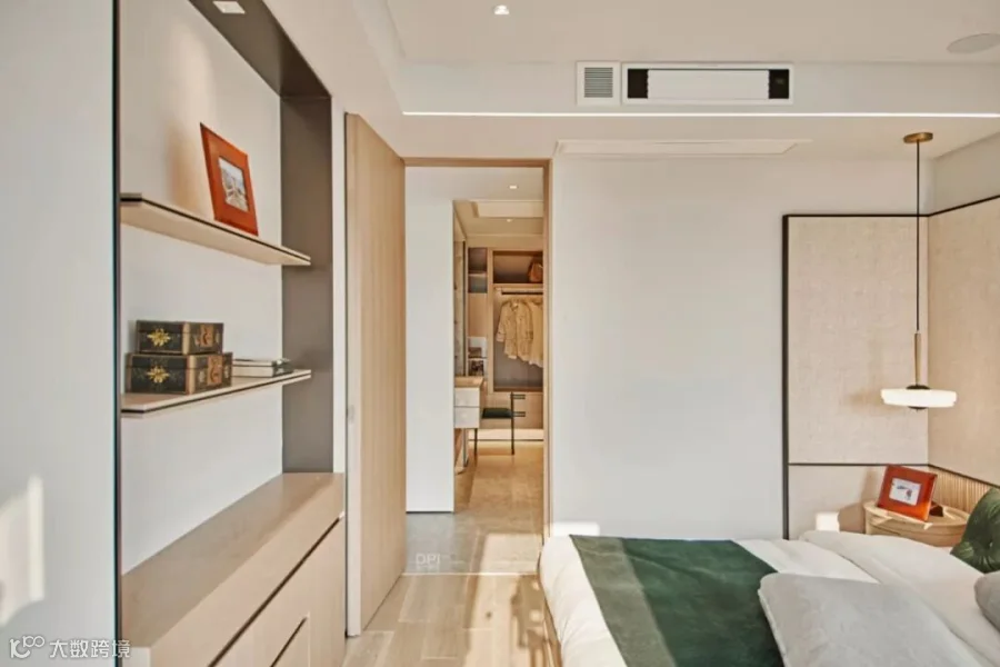 由于在客厅增加了一个客用卫生间,于是设计师将原来私密性较差的卫生间融入主卧,同时将储藏室的部分面积改成了主卧的衣帽架,从而大大提高了委托人夫妻的生活品质。