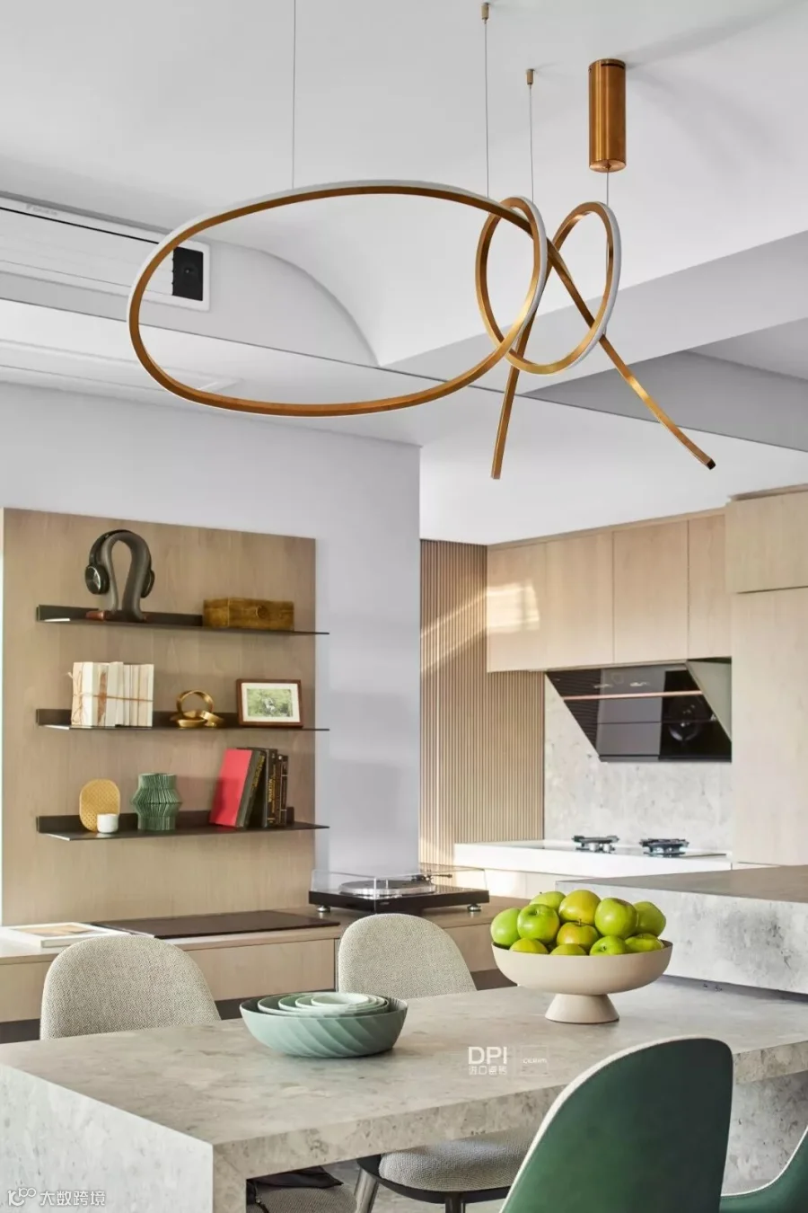 可供借鉴的隔音处理方案,利用弧形造型削弱梁的压抑感,防撞型材施工的转角作业面,柔和的灯光设计,开放式厨房、一体化的卫生间台盆化妆台,可分可合的步入式衣帽间……兼顾功能性与品质感的重构,让整个房屋焕然一新,细节处尽显设计的精巧与施工的细致,尤为优雅、舒适与温馨。