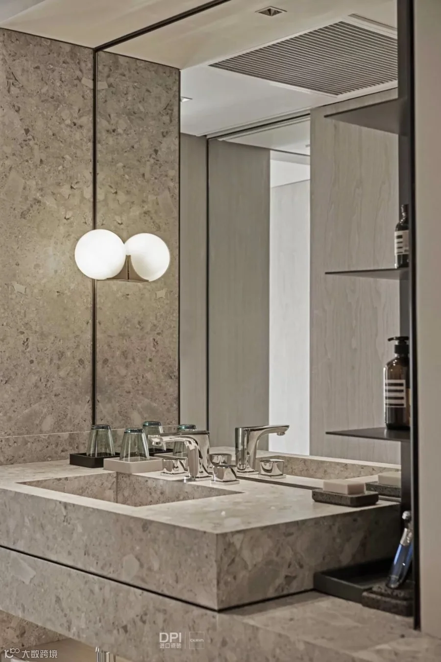本次改造项目选用意大利CERIM瓷砖齐铂灰,产品设计灵感源自意大利经典石材,融入时尚美学的灰度色,既完美呈现原石的自然风情,更在舒适淡雅的美学光感下,赋予空间优雅舒适、明亮柔和的流行魅力。