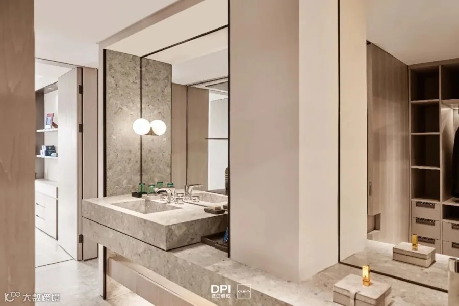 本案运用了CERIM齐铂灰,以超越时间维度珍贵石材为蓝本,灰白的组合。既完美呈现原石的自然风情,更在舒适淡雅的美学光感下,赋予空间优雅舒适、明亮柔和的流行魅力。