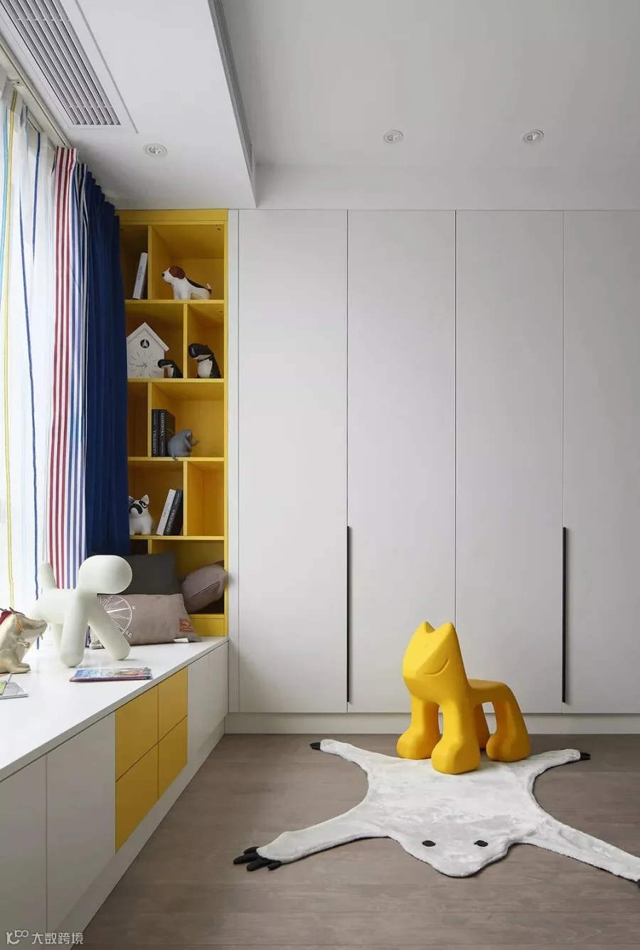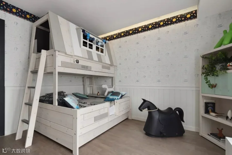 儿童房的瞭望塔床趣味横生,可作睡床亦可在里面玩耍,给了孩子实现梦想的渴望!形状各异小动物装饰品的介入使得儿童房充满童趣、动感与跳跃,一个孩童的小天地由此成型。