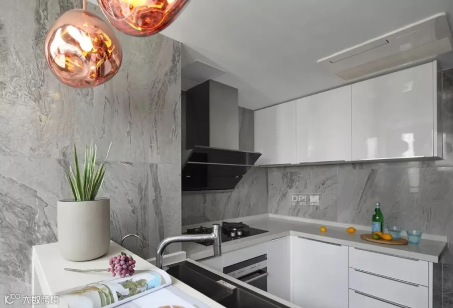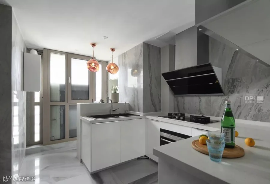 简洁而富有格调的厨房设计,讲究材质的纯粹洁白,功能性的逻辑思考。