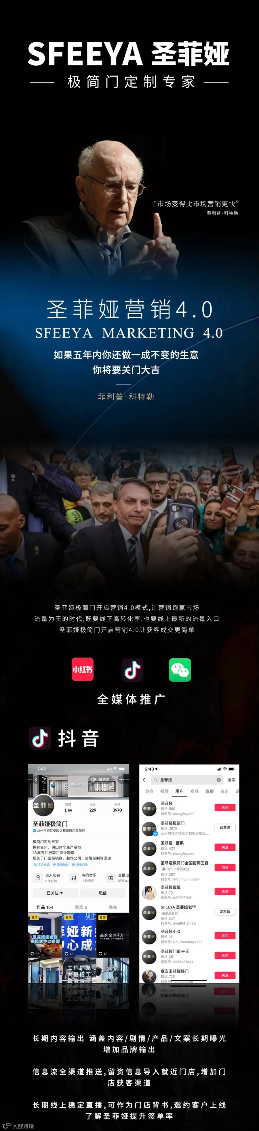 导读:圣菲娅极简门开启营销4.0模式,让营销跑赢市场。流量为王的时代,既要线下高转化率,也要线上最新的流量入口,圣菲娅极简门开启营销4.0让获客成交更简单。
