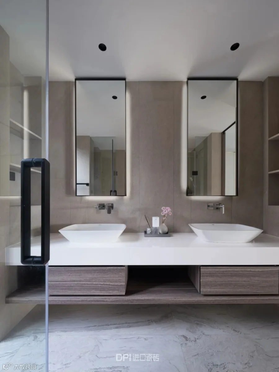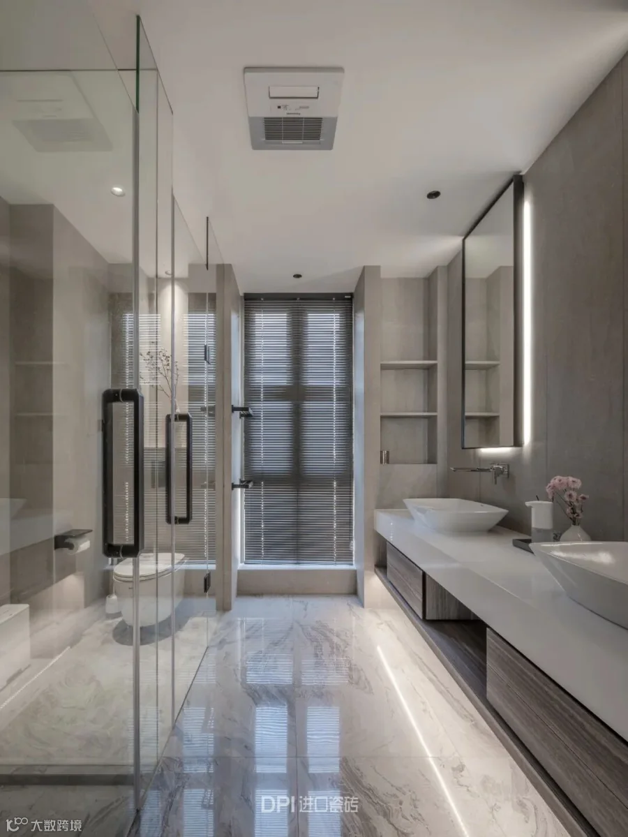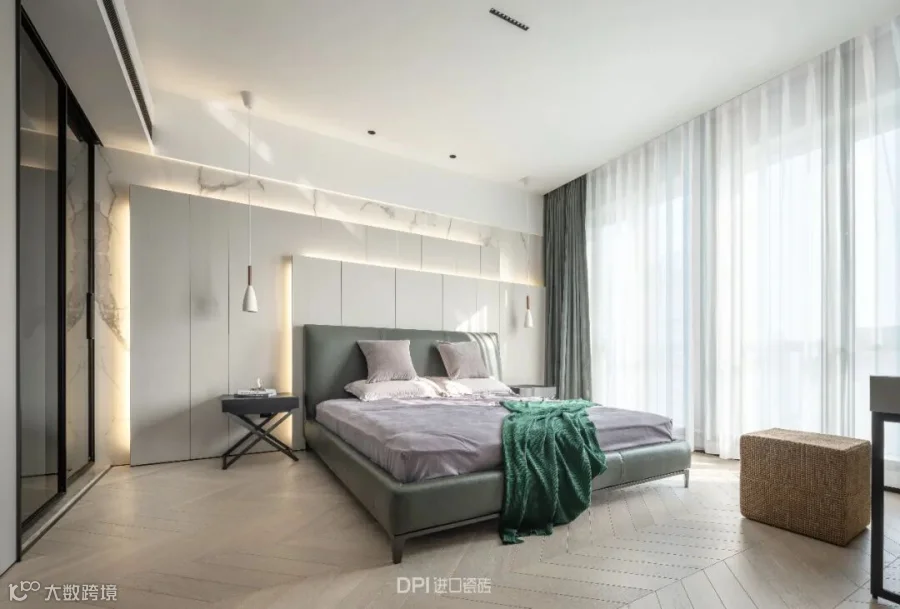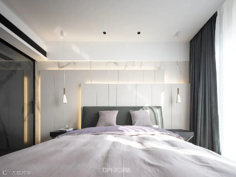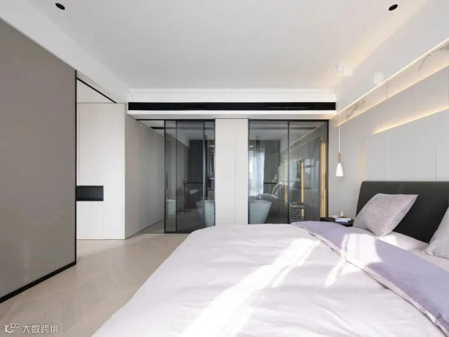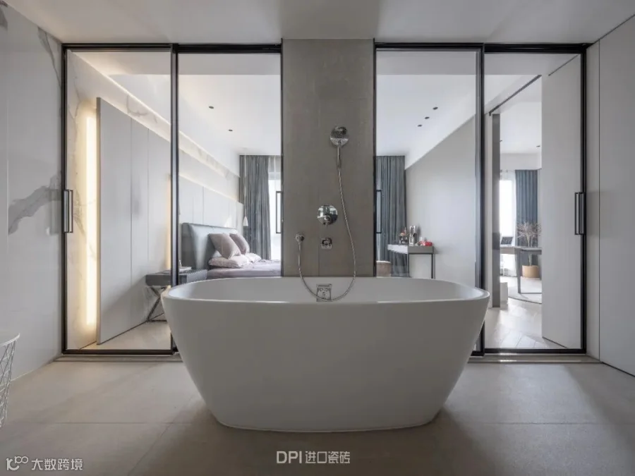 卫浴空间与床头连接,REX特级雪花白延伸运用