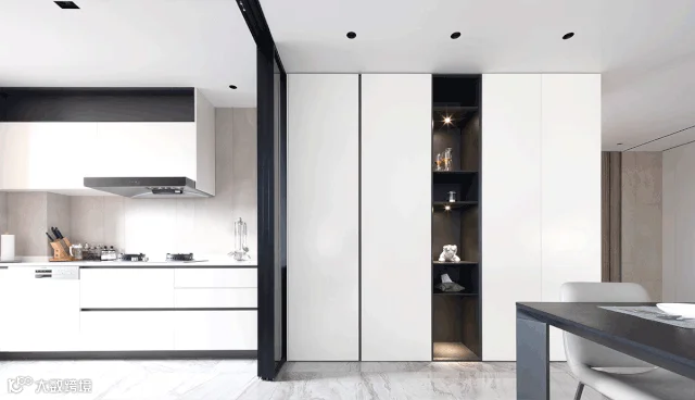 从餐边柜延伸至厨房橱柜,