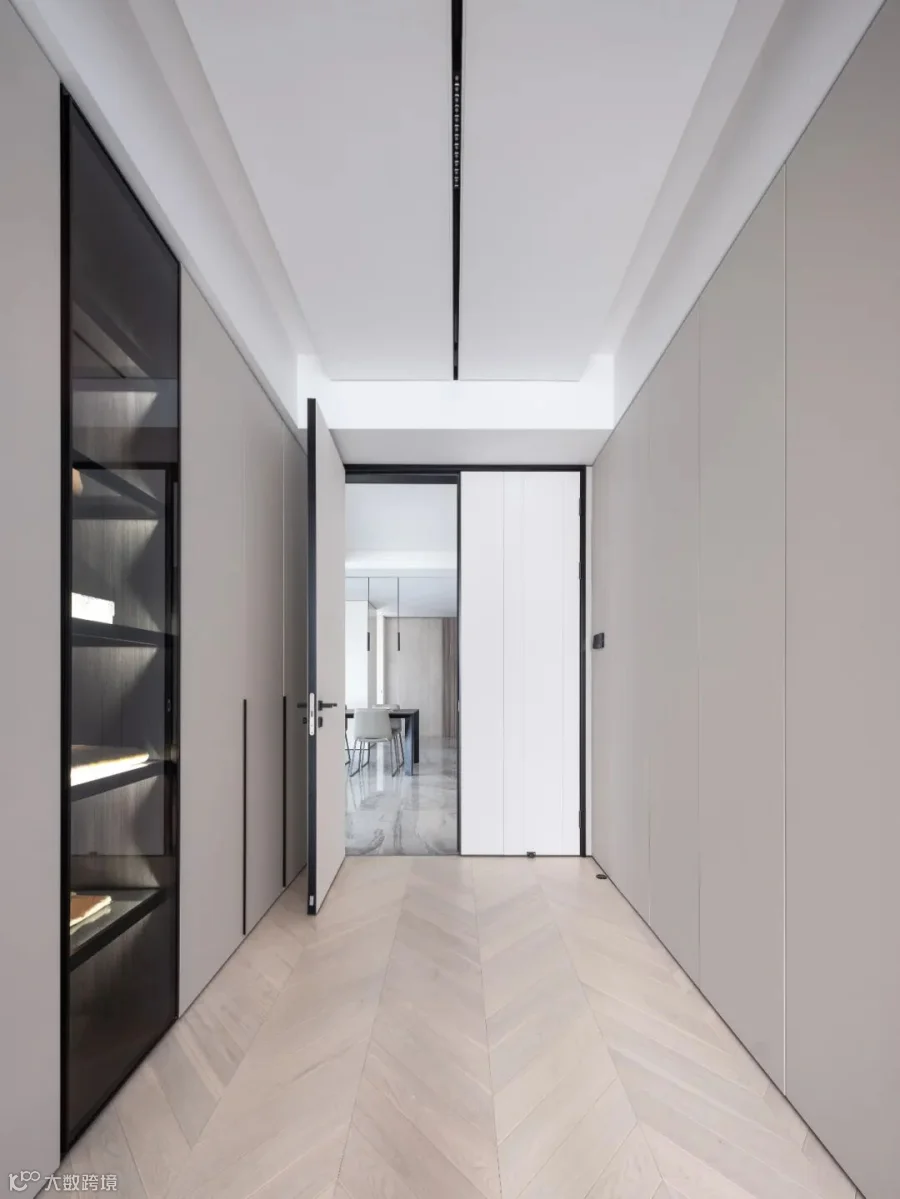 玻璃门框勾勒出通透的条形空间,