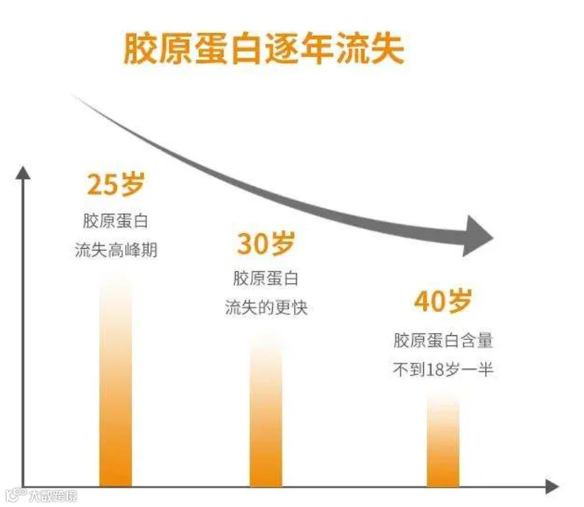 年龄是胶原蛋白流失的最主要原因,每10年就少1000克!