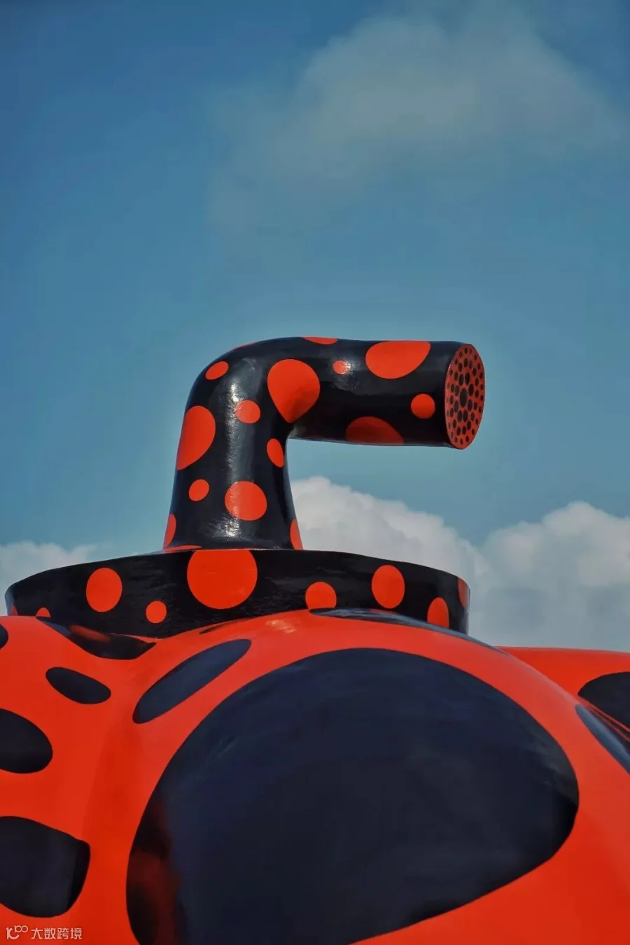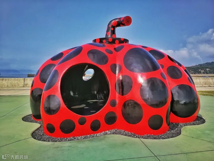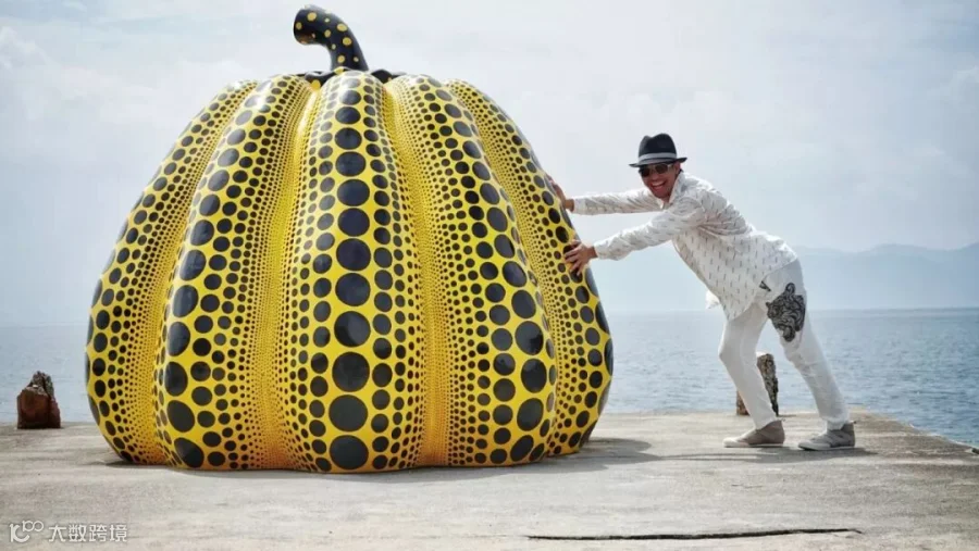 ▲ 阳光洒脱、光影投射之间,形态不一的赤色圆点南瓜,让设计师置身于一片海岸上的魔幻空间。