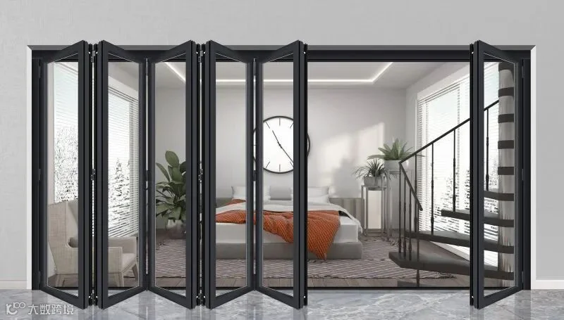 折叠门是铝合金门窗中的一种,与推拉门相比,具有开启氛围大,空间利用率高的优点,在别墅、阳光房、观景阳台等地方常常使用折叠门,以获得较大的视野范围。