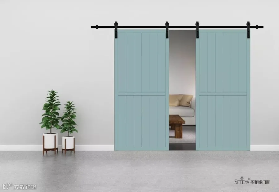 谷仓门前身是来自于国外农场的仓库门,是近些年非常流行的室内元素,也是吊轨推拉门的一种。
