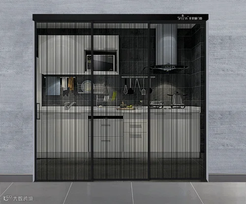入墙式推拉门也被称为隐藏式推拉门。门被收在墙内,不占用空间,比较适合于小空间使用。