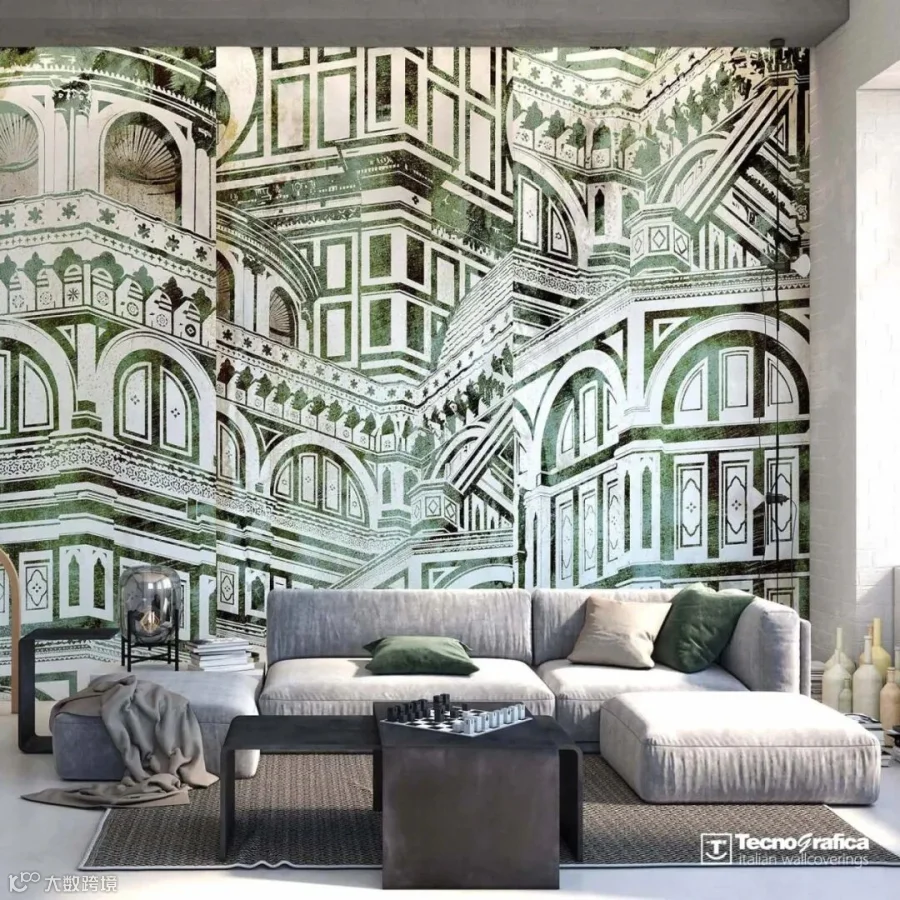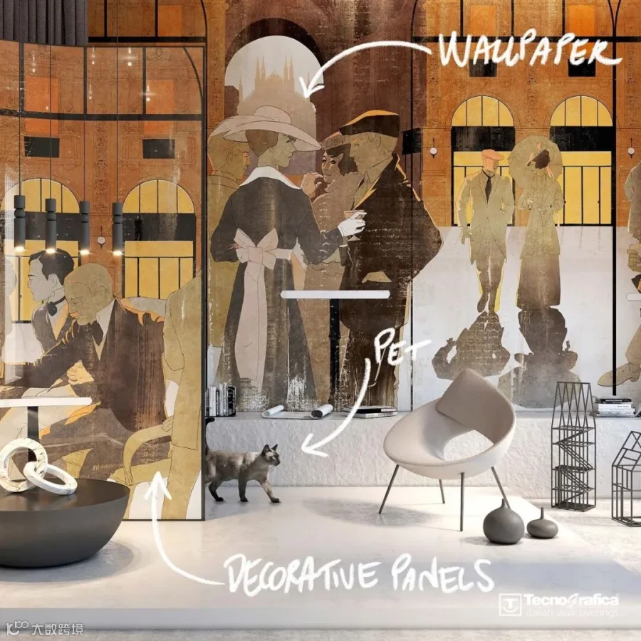 TECNOGRAFICA「GEOMETRIC PATTERNS·几何图案」主题墙纸从康定斯基的色彩情绪化表达与蒙德里安的几何秩序感中汲取灵感,通过色彩和形状的解构与重组,创造出具有当代性的设计语言,在视觉上营造出故事感和情感传递,每款花色都以不同的呈现方式塑造出风格各异的色彩世界,每款墙纸都散发着创造性张力与本身独特的生命韵律。
