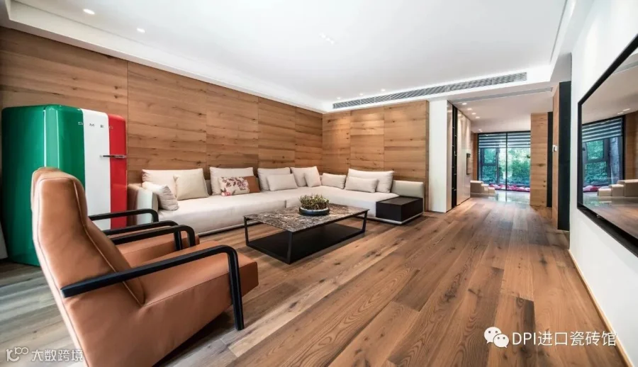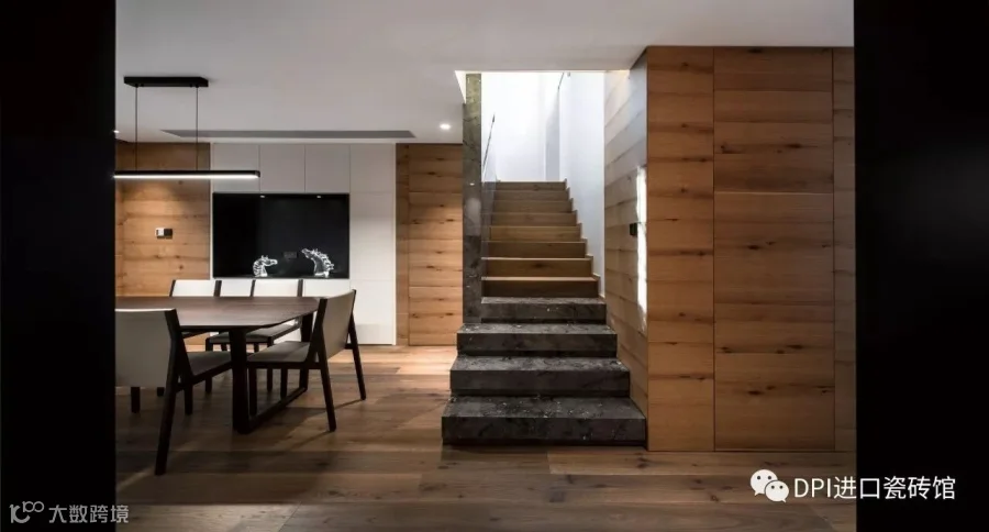 所以此项目中墙面地面运用了大量的木材质感的材料,再使用精致线条感强的钢板去做一些细节收口及局部柜类造型,让整体空间效果即达到业主所希望的自然温馨的感觉,又能体现现代的精致感。