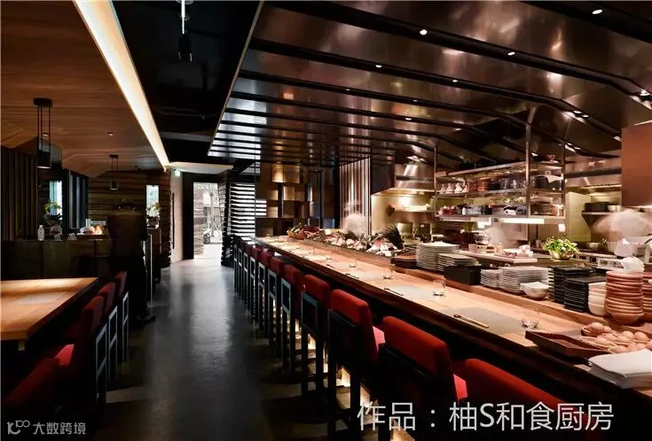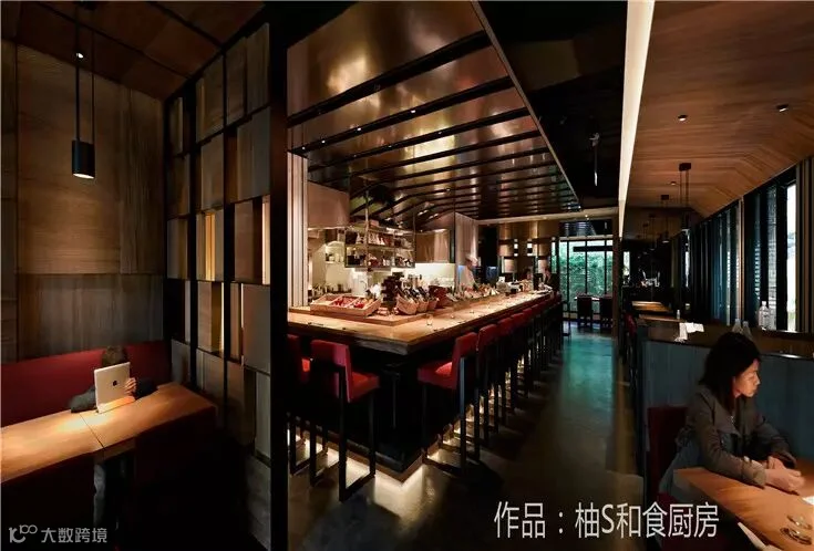 空间上运用实木的不同质感来烘托空间质地,同时将木料质感以多样化的3D折面引导至室内座位区。在室内部分,“亭”是此案座位区的主要概念,以“亭”的天花造型跨于座位区与户外开放空间。材质上以木头质感对比于厨房上方塑铝板天花,让空间有种冲突而新颖的视觉趣味。
