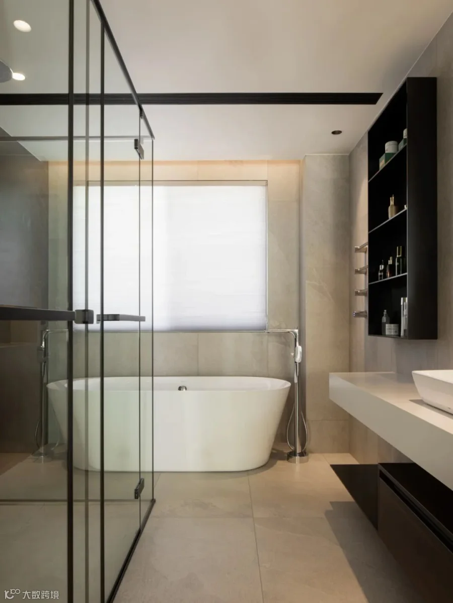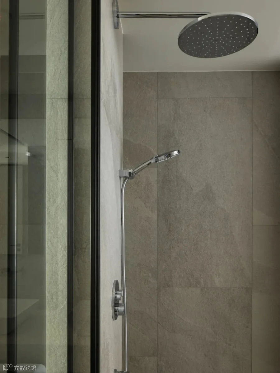 瓷砖与木地板的巧妙拼接,无形之中为空间划分出清晰的界限,而淋浴间与厕所间通过透明玻璃的隔断,不仅保留了空间的明亮感,还完美实现了干湿区域的分离,营造出独立而私密的环境。双台盆的分区设计,充分考虑了个人使用习惯,确保了互不干扰,从而显著提升了日常生活的便捷性和效率。