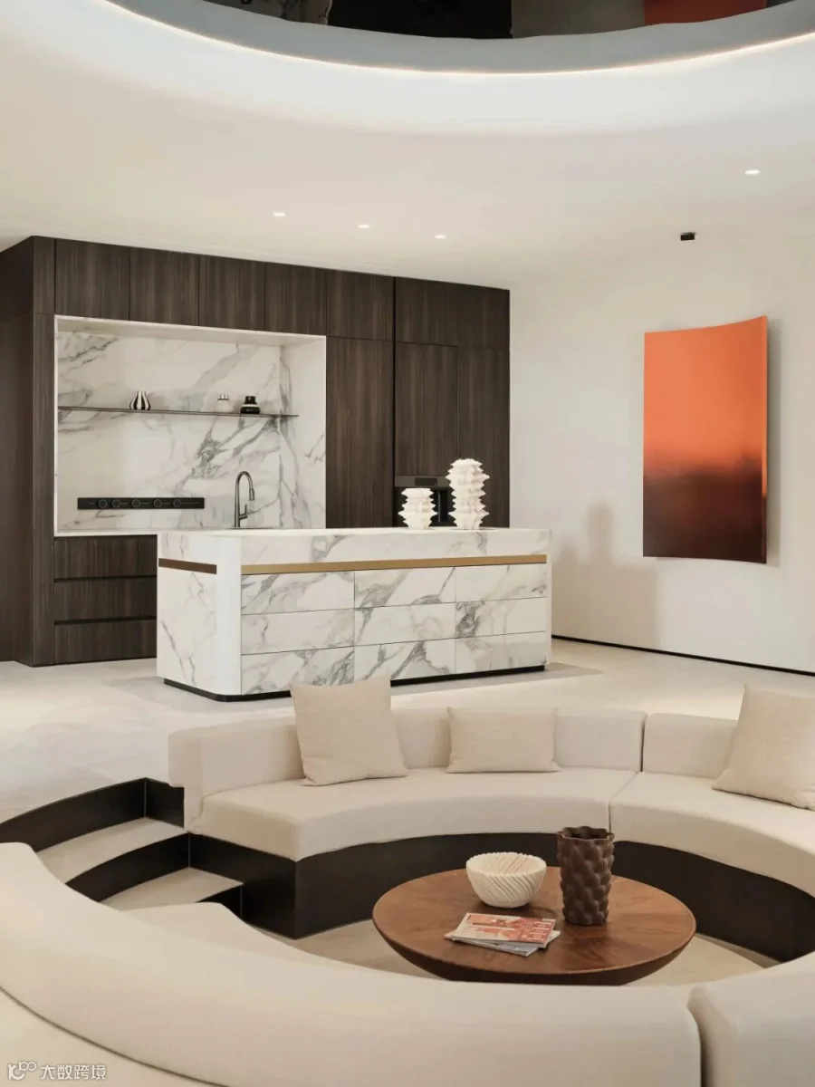 本案巧妙融合现代技术与精湛工艺,致力于创造一个既展现高端设计美学又富含艺术气息的家居环境,为现代家庭生活注入独特的意式生活美学与非凡体验。在此过程中,我们始终秉承FLORIM品牌的核心价值,将环保理念、实用功能、艺术审美与卓越品质巧妙结合,力求为每一位用户带来既时尚又可持续的高品质生活空间体验。