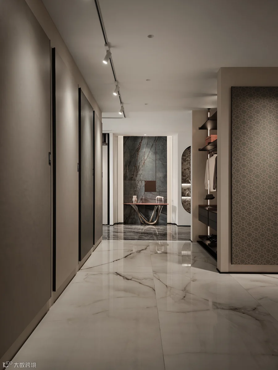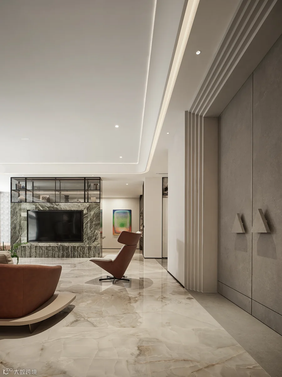 当然,在空间的公共区域中,亮色系的装置是不可或缺的,它能有效平衡瓷砖大面积的素色和冷调,提升空间的亮度和艺术感。