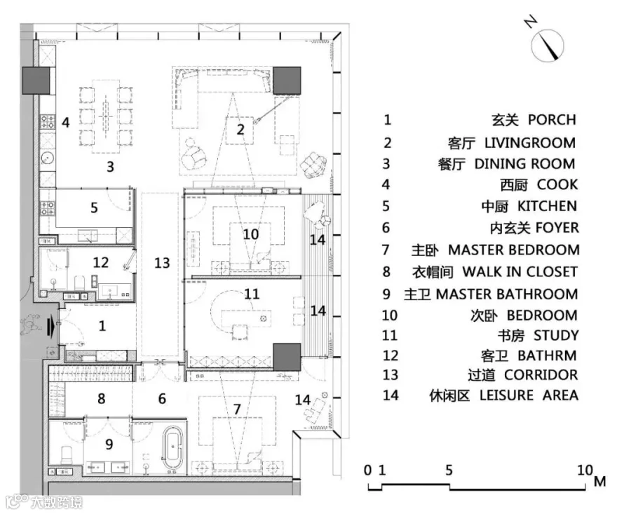 一门之隔与主卧相串联,强化空间体验