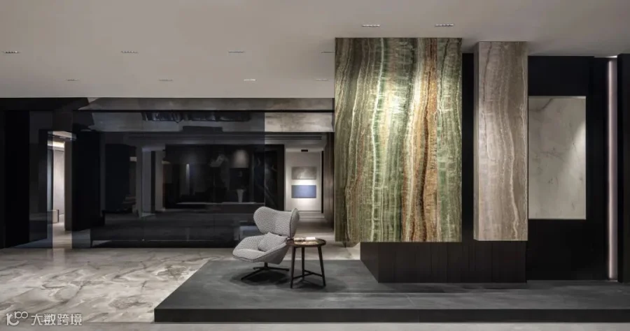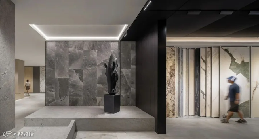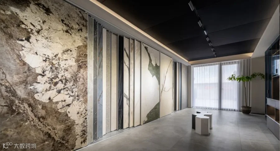 在展厅的整体设计上,巧妙融合了奢华与极简风格,营造出空间的精致感与松弛感;而流动性与和开放性的动线布局,让参观者能够自由体验FLORIM产品在不同场景下的应用;通过动态布局和光影效果,产品的纹理和色彩在展厅中生动展现,似在讲述着生活与艺术的故事。