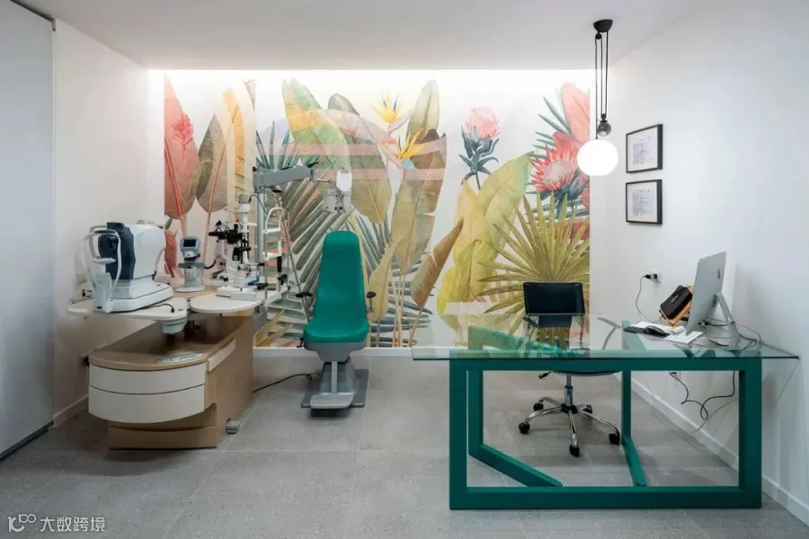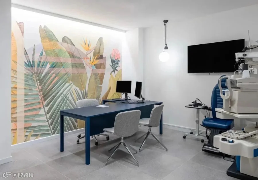诊所内的布置彰显了domECO将美学与功能性相结合的设计理念:大型热带植物叶片为空间增添了深度和动感,也让专业的医疗环境变得更加温馨。
