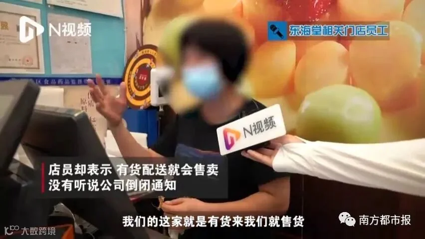 东海堂相关门店员工接受采访时表示,有货配送就会售卖,没有听说公司倒闭通知,不清楚传言是从哪里来的。