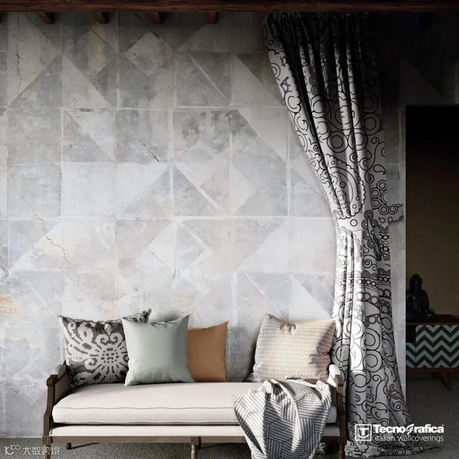 TECNOGRAFICA「GEOMETRIC PATTERNS·几何图案」主题墙纸从康定斯基的色彩情绪化表达与蒙德里安的几何秩序感中汲取灵感,通过色彩和形状的解构与重组,创造出具有当代性的设计语言,在视觉上营造出故事感和情感传递,每款花色都以不同的呈现方式塑造出风格各异的色彩世界,每款墙纸都散发着创造性张力与本身独特的生命韵律。